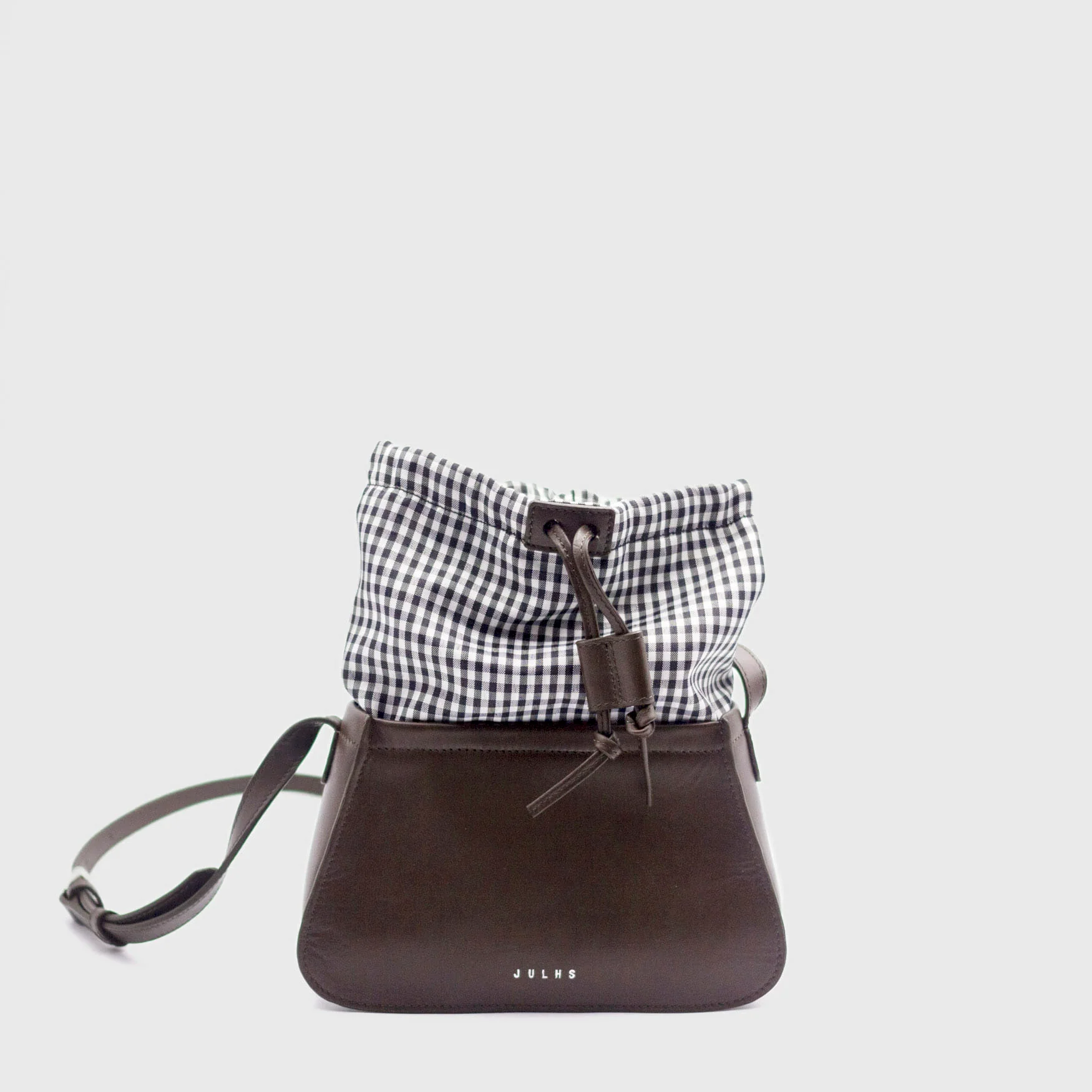 The Pyramid bucket bag is a tribute to our cherished Treasure bag, featuring a similar trapezoid leather body that’s both functional and visually striking. The bag’s triangular shape not only enhances its storage capacity but also makes it a standout accessory. The fabric upper secures with a cinched drawstring and a leather stopper, opening to a lined interior that includes a convenient cellphone pocket. Designed for versatility, it can be worn over the shoulder or crossbody using the adjustable shoulder strap.